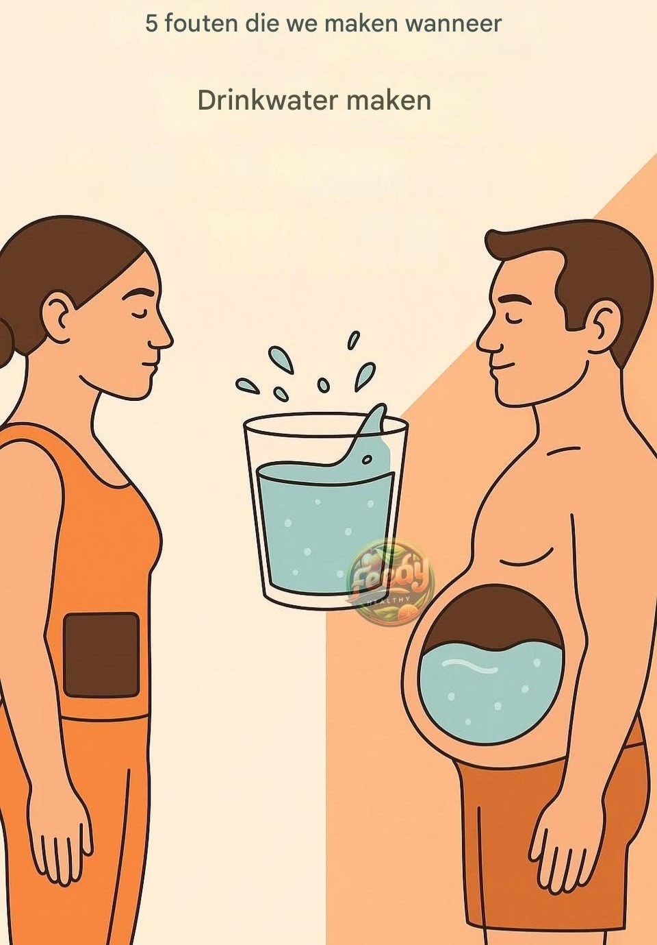 Te weinig water drinken. Een van de meest voorkomende fouten is te weinig water drinken gedurende de dag. De benodigde hoeveelheid varieert afhankelijk van factoren zoals het klimaat, lichamelijke activiteit en gezondheidstoestand. Over het algemeen wordt aanbevolen om tussen de 2 en 3 liter water per dag te drinken. Wacht niet tot je dorst hebt; dorst is namelijk al een teken dat je lichaam uitgedroogd is.