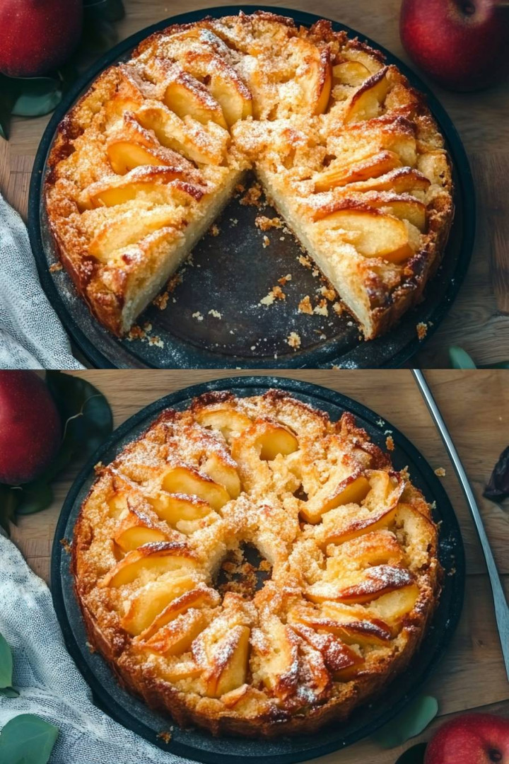 Appeltaart is een eenvoudig en heerlijk dessert, perfect voor elke gelegenheid!  Zacht en geurig, iedereen zal er dol op zijn! Ingrediënten: 2 appels 4 eieren 125 ml melk 150 g suiker 150 ml olie Een snufje zout Ongeveer 300 g bloem 15 g bakpoeder🍏🍰Bereidingswijze: