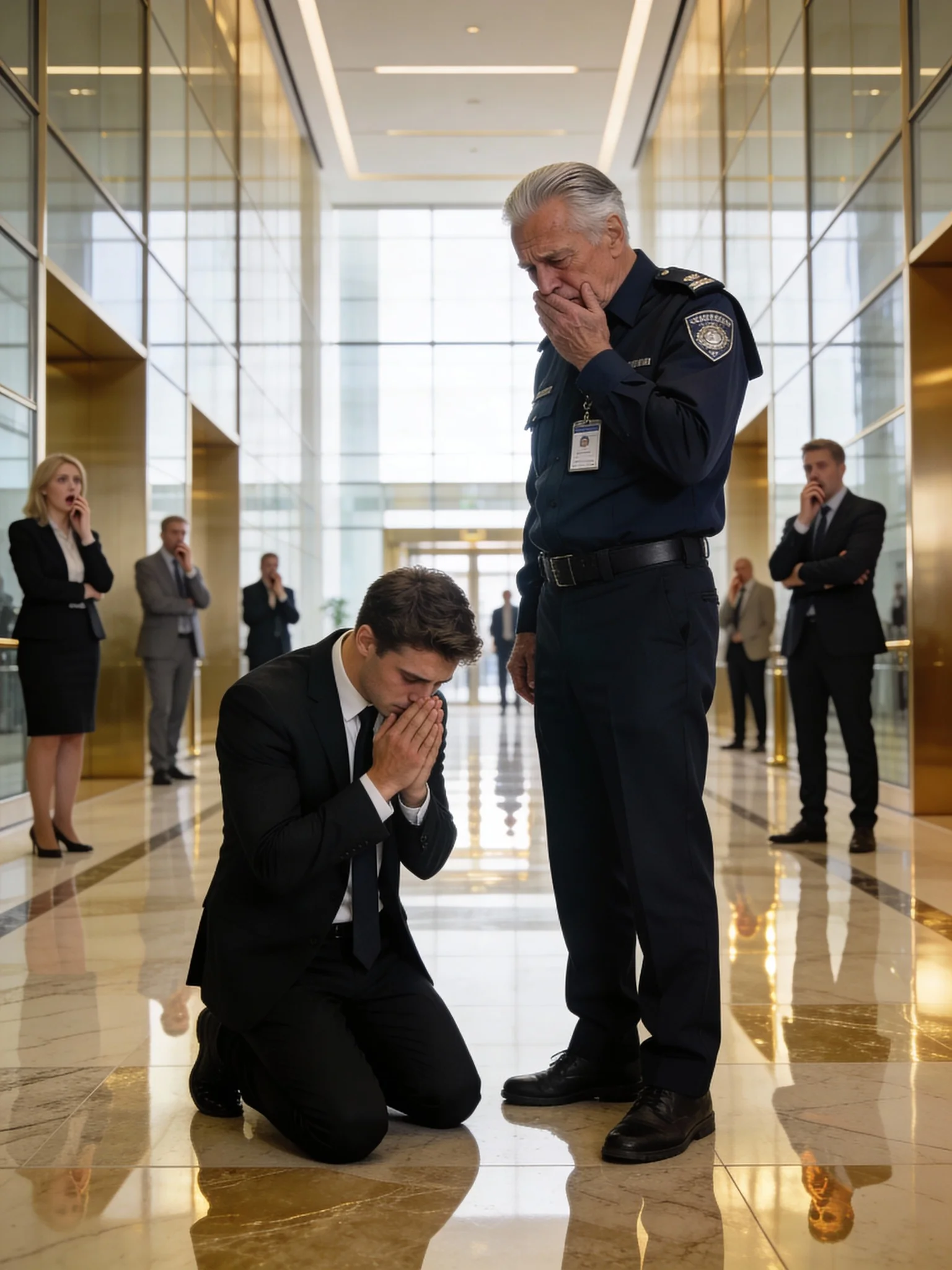 ‘Zoon… ik schaamde me,’ fluisterde hij. ‘Jij bent nu de CEO. Ik ben slechts een bewaker. Ik wilde niet dat mensen je uitlachten. Ik wilde je niet in verlegenheid brengen.’