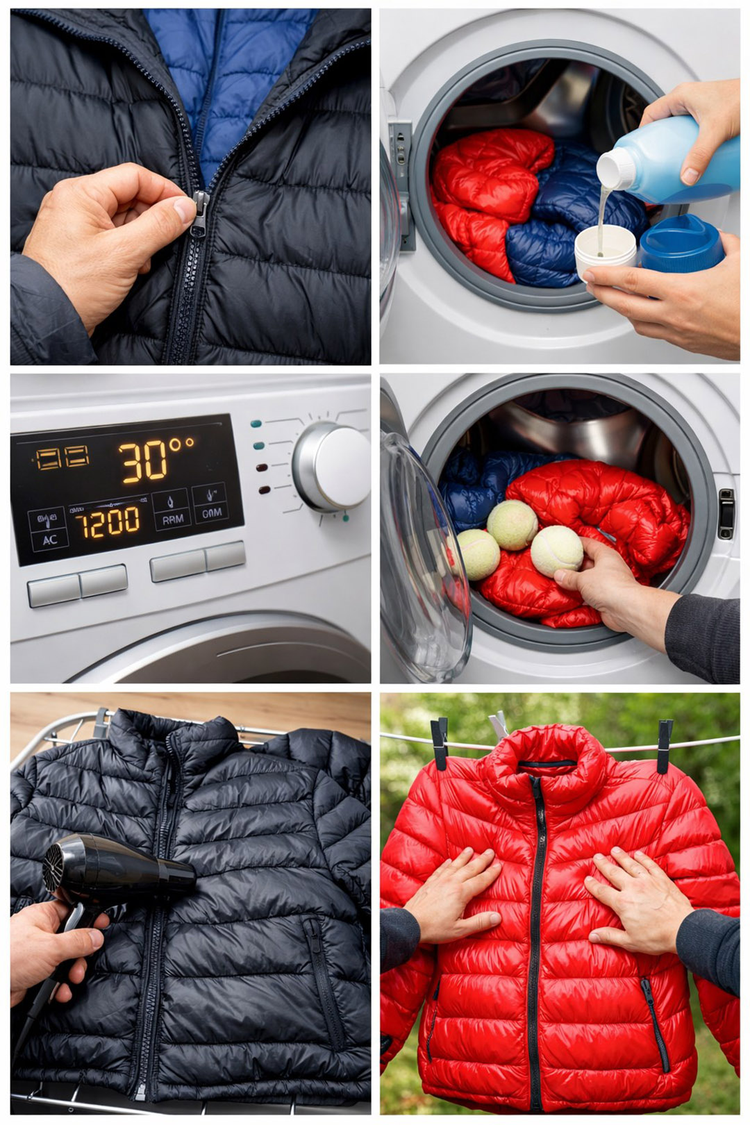 Synthetische jassen en donsjacks zijn ontworpen om warmte vast te houden en tegelijkertijd ademend te blijven. Hun geheim? Lichtgewicht vezels die lucht vasthouden. Het probleem is dat te agressief wassen deze structuur kan aantasten, waardoor er lelijke klonten ontstaan en het kledingstuk er plat en dof uitziet.