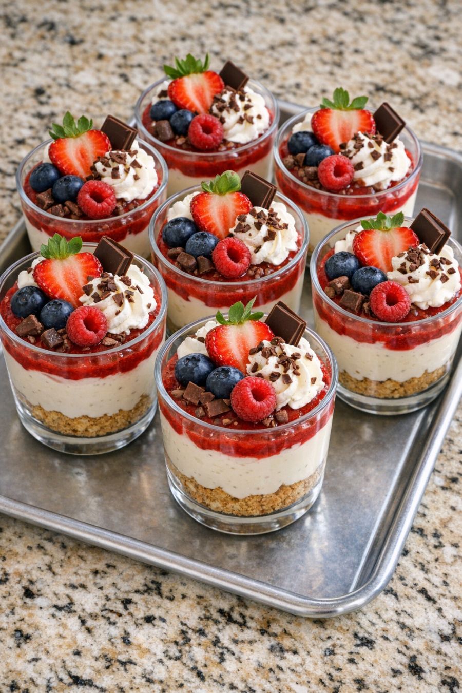 Toen ik als jonge bruid mijn weg moest vinden in een kleine boerenkeuken, zei mijn moeder altijd: “Er is altijd plek voor een beetje chocolade.” Deze chocoladeroomtaartjes zijn een knipoog naar de taarten uit de kerkkelders en de feestelijke desserts waarmee ik ben opgegroeid, maar dan in een vereenvoudigde versie met slechts vijf ingrediënten en een formaat voor elke dag. In plaats van te klooien met het uitrollen van deeg en het bakken van hele taarten, doe je een simpele bodem van koekjeskruimels in kleine vormpjes en bedek je die met koele, fluweelzachte chocoladeroom. Het is het soort dessert dat je op een dinsdagavond in elkaar kunt zetten, maar dat toch speciaal genoeg is voor gasten. Als je bent opgegroeid in het Midwesten van de Verenigde Staten, herken je de vertrouwde troost van pudding en slagroom – die onmisbare ingrediënten op elke potlucktafel – alleen zijn ze hier verpakt in nette kleine porties die makkelijk te delen, mee te nemen of in de koelkast te bewaren zijn voor een rustig tussendoortje na het avondeten.
