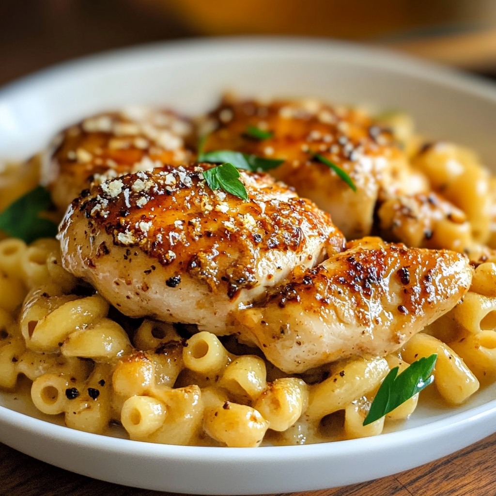 Pittige kip met honingpeper en romige macaroni en kaas