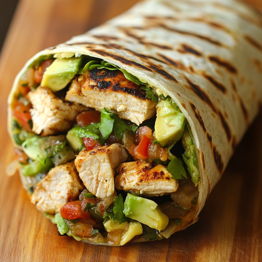 Wrap au poulet grillé, avocat et salsa
