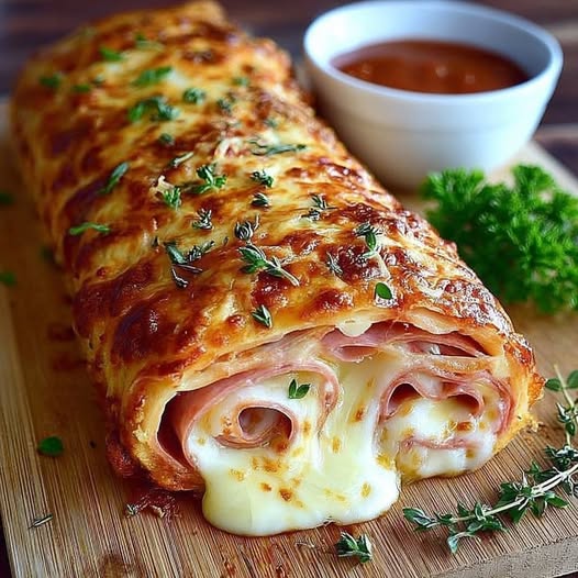 Roulé feuilleté au jambon et fromage