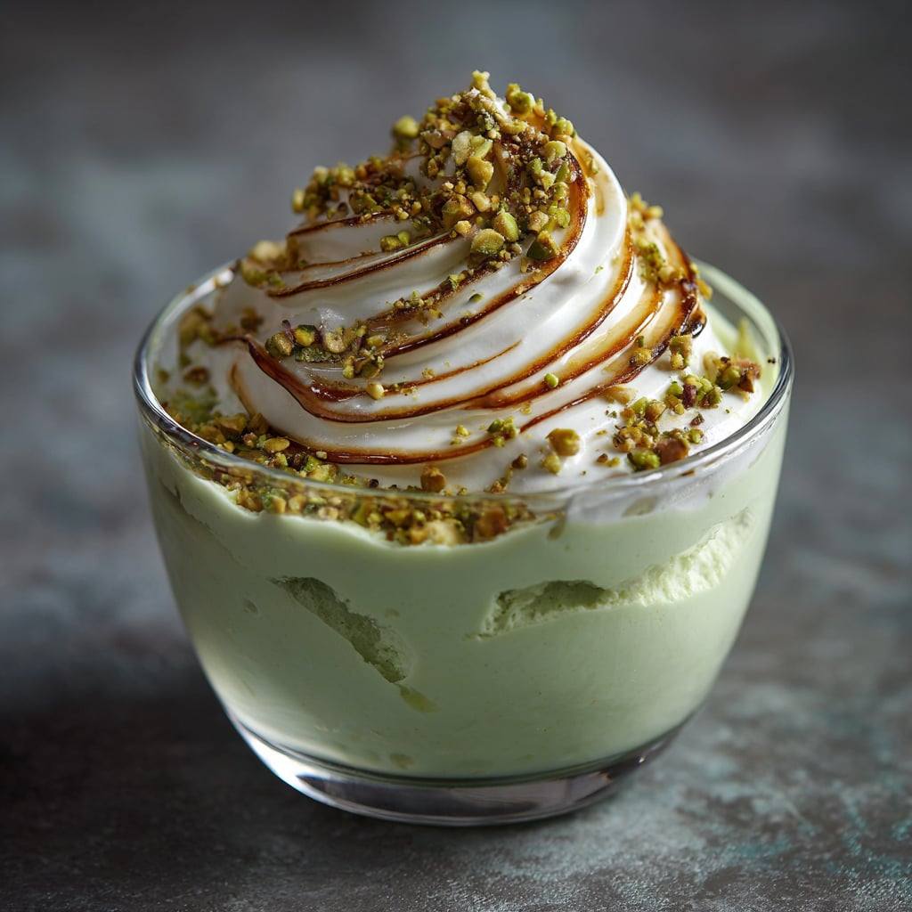 Bereidingstijd: 50 min | Voor 4 personen Ingrediënten: 4 eiwitten 100 g suiker 500 ml melk 4 eidooiers 60 g suiker 2 eetlepels pistachepasta VOLGENDE PAGINA