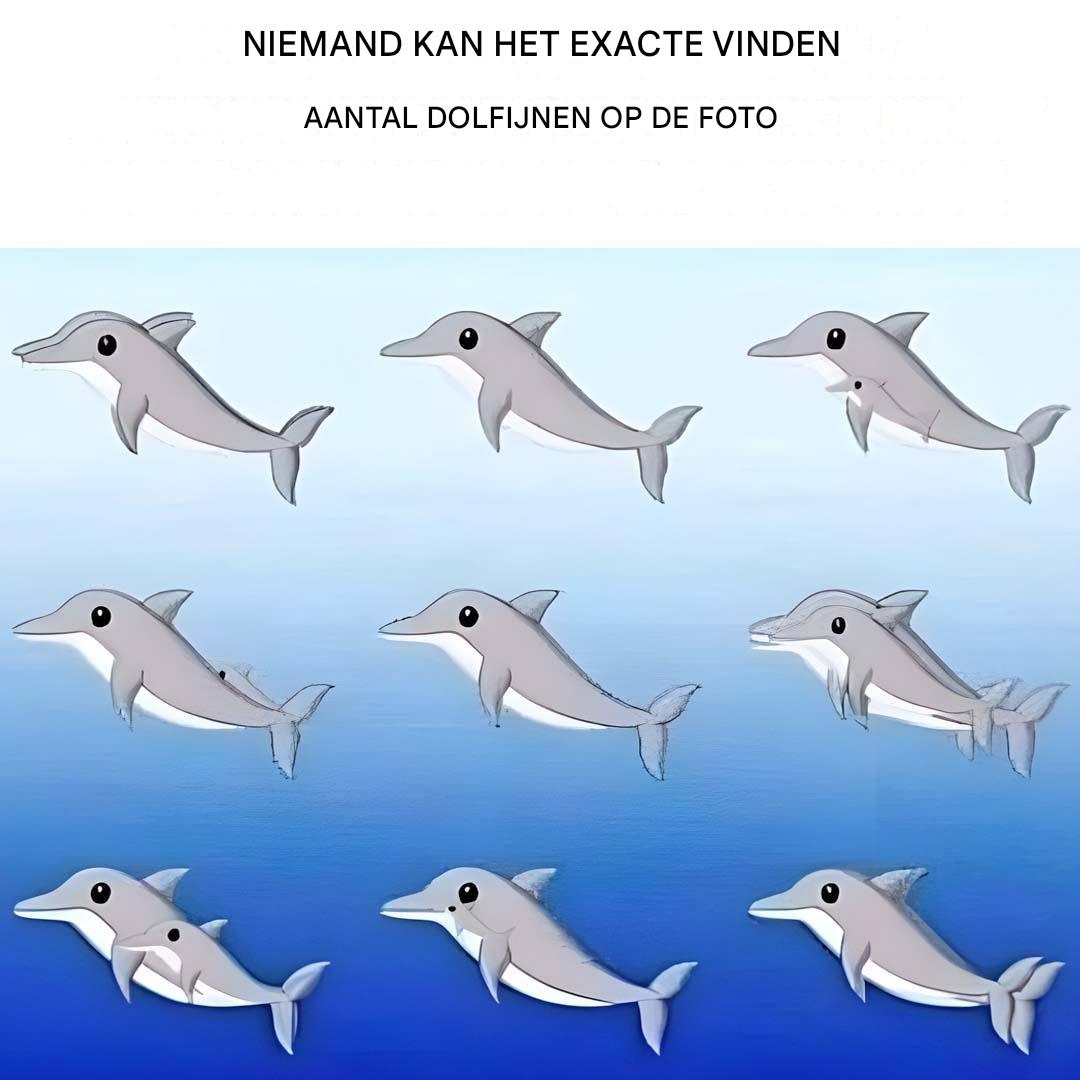 Hoeveel dolfijnen kun je op de afbeelding spotten?