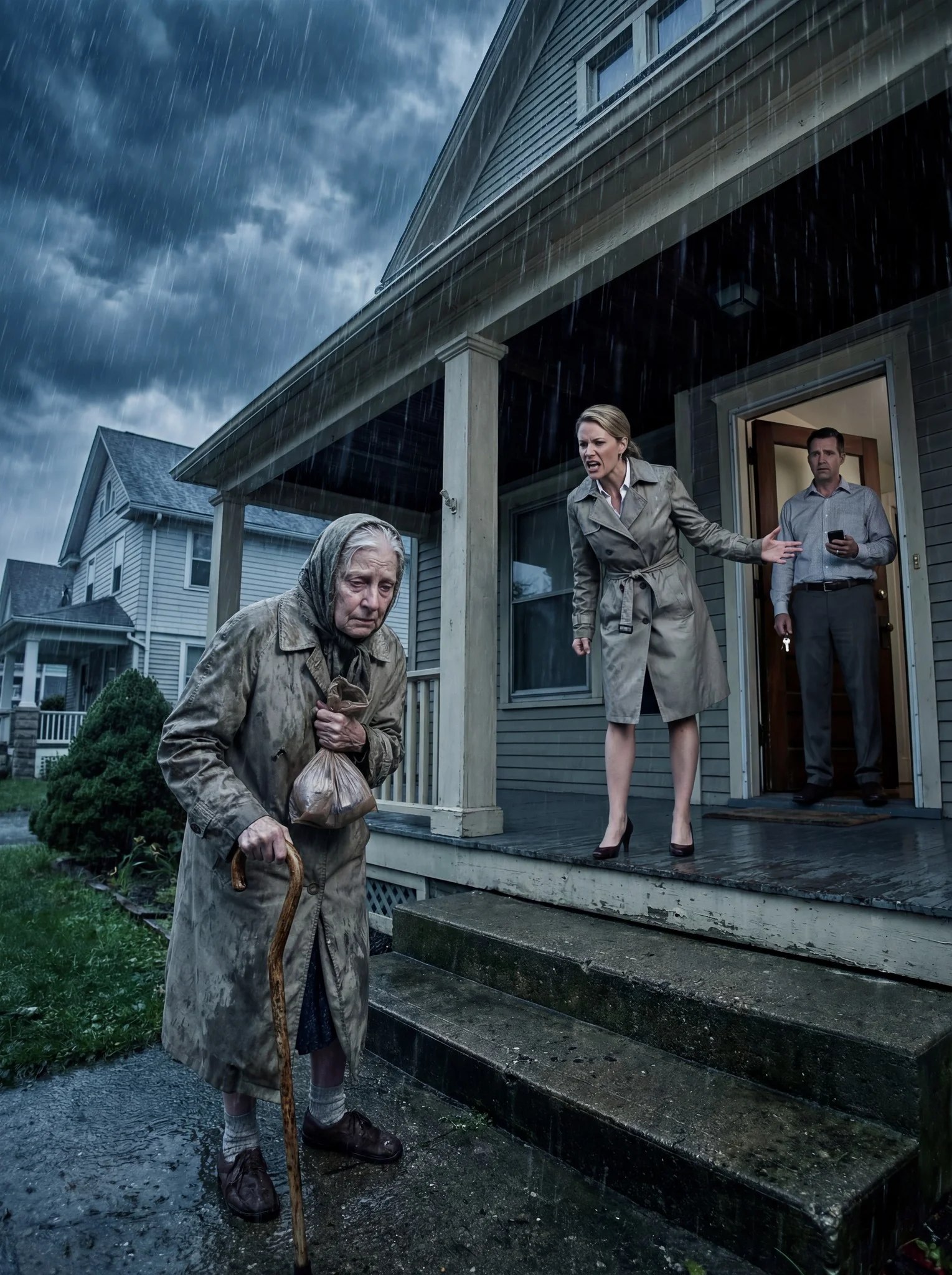 Eleanor bleef even staan, de tas tegen haar borst geklemd. Toen de regen eindelijk begon, vermengde het water zich met de tranen die ze niet langer kon bedwingen.